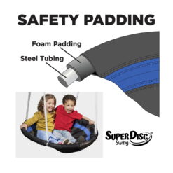- SUPER DISC ™ 34-inch diameter swing for 2, with padded frame and weather-resistant durable fabric.