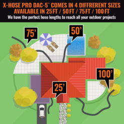 An exclusive design like no other garden hose you’ve seen! It’s lightweight, compact, and expandable, with a powerful spray and a kink-free design. Now the Dac 5 Xhose Pro is better than ever, with solid brass fittings, a wider diameter and more powerful spray, and crafted from even stronger materials. Plus, it expands and contracts up to three times its length for easy maneuverability and convenient storage. The Dac 5 Xhose Pro is like no hose in the world, making it easier than ever to work in the yard, wash your car, and more. You can even take it on the go, in your truck, boat, or RV.