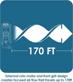 - POWERFUL & EFFICIENT –2100 CFM while drawing only 1 Amps thanks to the advanced high torque motor and unique grille design for focused airflow up to 120+ feet.