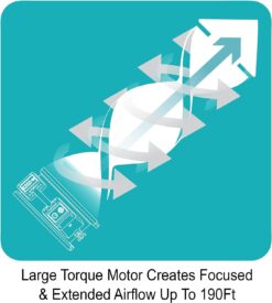 - POWERFUL & EFFICIENT – 3600 CFM while drawing only 2.8 Amps thanks to the advanced high torque motor and unique grille design for focused airflow up to 120+ feet.