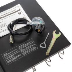 The XtremepowerUS Outdoor Camping Propane Double Burner Stove Station features twin 29,000 BTU propane stoves and convenient drop-down side tables made to be compact and portable for a diverse selection of outdoor cooking applications. Add-on the flat top griddle and deep fryer to the cook station for teppanyaki-style grilling or deep frying all kinds of foods. This outdoor cooking stove is perfect for on-the-go cooking when bringing friends or family for some outdoor camping and adventure fun. Easily transport the double burner stove on and off the campsite using its built-in. swivel caster wheels for quick mobility and easy transport. The outdoor stove is constructed with heavy-duty cast-iron metal frame and finished with heat resistant coating to ensure long-lasting durability and corrosion resistance. It has cookware hanging racks to hold all your cooking pots, cooking utensils and kitchenware effortlessly onto the rack. The mounted propane burner design is safe and efficient for securing propane gas tanks safely beneath the stove top. The perfect lightweight and portable cooking stove station for outdoor cooking when camping, picnicking, backpacking and more.