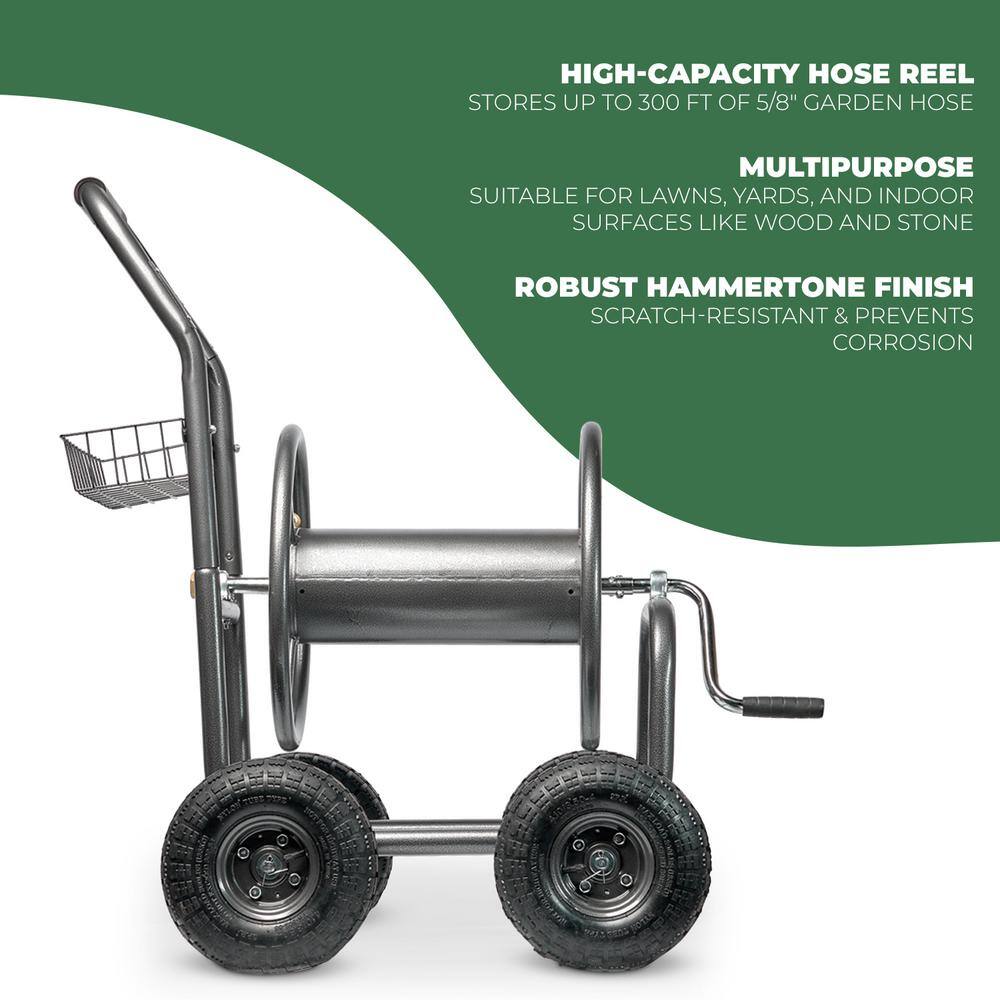 - Large hose capacityeasily manage your garden watering needs with the hose reel cart’s substantial capacity, it can accommodate up to 300 ft. of hose, providing ample reach for even the largest gardens or yards