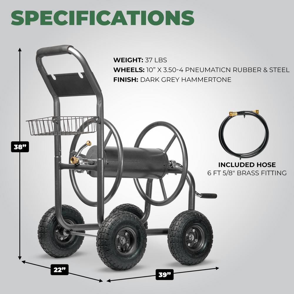 - Functional designthe hose reel cart boasts a highly functional design, making it a versatile addition to your garden tools, the 4 sturdy wheels provide easy mobility, even when the cart is loaded with a long hose, the non-slip handle grip offers a comfortable and secure hold and the included storage basket provides a convenient space for your gardening tools and accessories