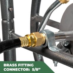 - Durable construction made from a heavy-duty metal frame, this hose reel cart is built to last, the powder-coated finish ensures the cart is weather-resistant, extending its usability, additionally, the inlet hose connection is made of premium brass to prevent leaks