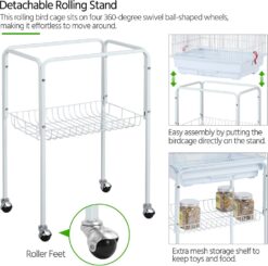 Yaheetech 62.5-in Rolling Large Bird Cage & Detachable Stand, White