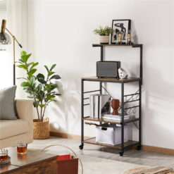 The rack is crafted of a sturdy metal frame and the shelves use premium thick particle board. This utility kitchen island offers four multi-sized shelves to organize your go-to kitchen needs like kitchenware or spice jars and some smaller appliances like microwaves, coffee makers. The classic gray color can coordinate with a variety of styles, especially rustic barn-style and industrial design, it will not only be a good helper but also be a unique décor in your kitchen