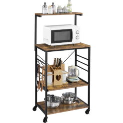 Yaheetech Kitchen Baker’s Rack Utility Storage Shelf Microwave Stand Cart on Wheels with Side Hooks, Rustic Brown