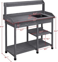 - 【Practical & Convenient Designs For Horticulture】This waist-height garden potting bench embraces a working and storage area for horticulture. The spacious console features a removable plastic sink, and the storage area comprises a drawer, a 2-layer shelf, an elevated top shelf, and 3 side hooks for ease of use.