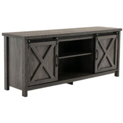 - Double Sliding Barn Doors with Handles: This TV cabinet features 2 X-frame barn doors that work on a smooth metal rail and can be effortlessly slidden to the middle or both sides, depending on your needs. Two doors provide extra style while preventing the things inside from dust and dampness.