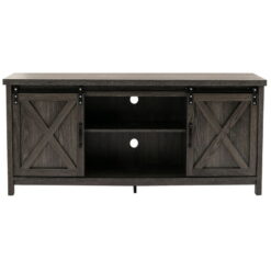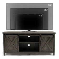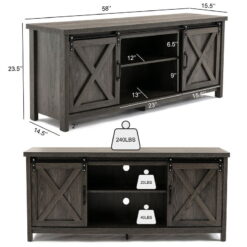 Yaoping 58″ Farmhouse Sliding Barn Door TV Stand for TVs up to 65″ Television Cabinet(Dark gray), Wood, Metal