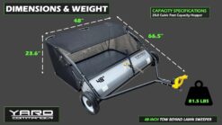 Yard Commander YTL-171-435 48-Inch Tow-Behind Lawn Sweeper, 10″ Nylon Brushes, Universal Tractor/ATV Hitch, Never-Flat Wheels, Adjustable Height, 1-Year Warranty, Ideal for Leaves, Grass & Debris