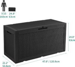 - EXTRA LARGE SPACE- Our outdoor storage box has a storage capacity of 100 gallons and total dimensions of 47.6″L x 21.2″W x 24.8″H.