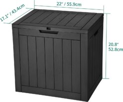 - PRODUCT DIMENSIONS- With a 30-gallon storage capacity and dimensions of 22”L x 17.1”W x 20.8”H, this outdoor storage box is the optimal choice for storing small items with easy accessibility.