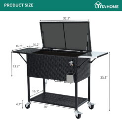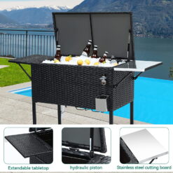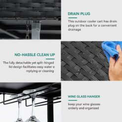 - SLEEK YET FUNCTIONAL- This wicker rolling cooler cart features a drain plug on the back, a drain pipe, plus two hydraulic piston design for hassle-free water emptying and cleaning; All-weather hand-woven wicker surface conveys a rustic allure with functionality to your patio.