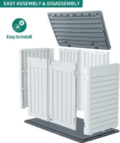 - Versatile Functionality: With multiple opening directions and flip cover support rod, this premium shed allows for quick and easy storage; Padlock latch (lock not included) ensures safer storage and step-on lock secures the door to floor for convenience