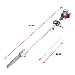 This is a gas trimmer for branch and leaf pruning work in woods, orchards, and urban greenery. The gas trimmer is powered by a highly efficient 42.7cc two-stroke engine. Its 1.25KW power increases your efficiency in pruning branches. The length of the gas trimmer is 94.48-133.85 inches, so you can easily trim high branches without the risk of standing on high ground.