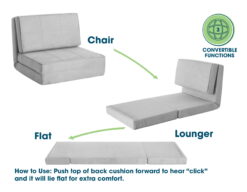 - HOW TO USE: Push the top of the back cushion forward to hear a “click” and it will lie flat for extra comfort. Can be used in any room in the house!