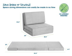 - SIZE: Chair Position: 28″ L x 28.5″ W x 23.6″ H, Bed Position: 28″ L x 82.6″ W x 4.3″ H