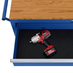 YUKON 46 in. Mobile Workbench with Solid Wood Top, Blue