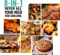 - 8-IN-1 GRILL&SMOKER – With its 180° to 450° F temps range, Offers more versatility to grill, smoke, bake, roast, sear, braise, barbecue, and char-grill with incredible hardwood flavor.