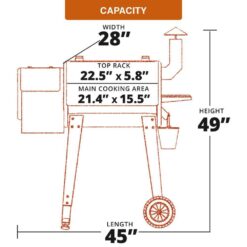 | Grill/Smoker Features | Automatic Shut-Off, Heat Thermometer, Pellet Purge System, Storage Rack, Warming Rack | Grill/Smoker Fuel Type | Pellet |