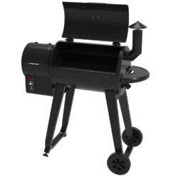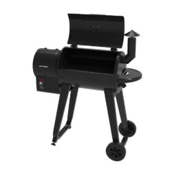 - Huge 459 sq. in. grilling area, 15 lbs. hopper capacity, foldable working shelf, heavy-duty all-terrain wheels, rustproof cover and racks