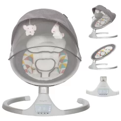 Zazu has a toy mobile with two plush toys that pivot easily out of the way. The cradling seat is adorned with pastel prints that tastefully complement your home decor. Add more peace of mind with the mesh cover canopy when your little one is napping. The five-point harness, anti-skid and washable seat pad make this swing a must-have as it’s designed with parenthood in mind.