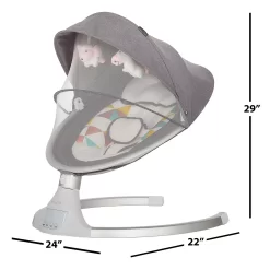 - ENTERTAINMENT INCLUDED – The Zazu comes with 2 attached soft toys that entertain and engage baby. Watch your baby coo, grab and interact with them DIMENSIONS – 25″ L x 21.5″ W x 19.5″ H inches Weight of swing – 7.3 lbs