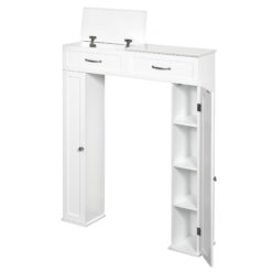 Choose the innovative and space saving Zenna Home Lift Top Bathroom Storage Console Cabinet and say goodbye to bland bathroom storage. With a beautiful design and lots of built in shelving, this cabinet fits around and over your toilet to add valuable storage into your bathroom. Each side of the console unit has a door that opens to reveal four levels of storage (including 2 adjustable-height shelves). The console’s cleverly designed lift top feature allows you to open one half or both sides of the cabinet’s lid to access additional storage. The console has a 36-inch clearance from the floor, allowing to fit over most standard and taller modern toilets. Assembly is easy, with illustrated instructions and hardware included.