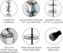 | Included Components | ‎bathroom bath space shower organization organizer storage shelf shelves shelving deep basket caddy tension pole rod corner 4 tiered adjustable height rust resistant no tool free razor hook towel bar |