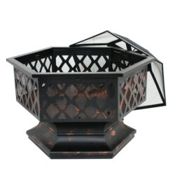 Thanks for choosing ZENSTYLE hex fire pit. It’s made of heavy duty steel which allows it can be used for a long time. WIth it’s light weight design (15.75 lbs.), this fireplace can be moved around your yard with ease. Bronze and black finish is stylish and will stand up against the outside weather to keep your patio looking good. Flame retardant lid will limit the amount of ashes emitting from the flames.