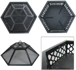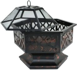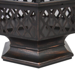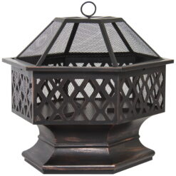 We are proud to present this Hex Outdoor Fire Pit Bowl. Enjoy cool and chilly nights by the warm flickering flames of this fire pit. The 6-sided shaped, heat-resistant mesh fire screen fits over the top of the fire bowl. The bronze finish and lattice design will add to your outdoor home decor, whether it be your porch, patio, or garden. With its deep and wide bowl, you will be able to hold a great amount of wood to keep the fire burning for hours (wood not included).