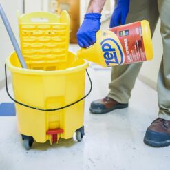 - Concentrated Formula: High-alkaline formula goes on quickly with a scrubbing machine or a cotton mop and mop bucket with a wringer. One gallon of concentrate makes nine gallons of solution