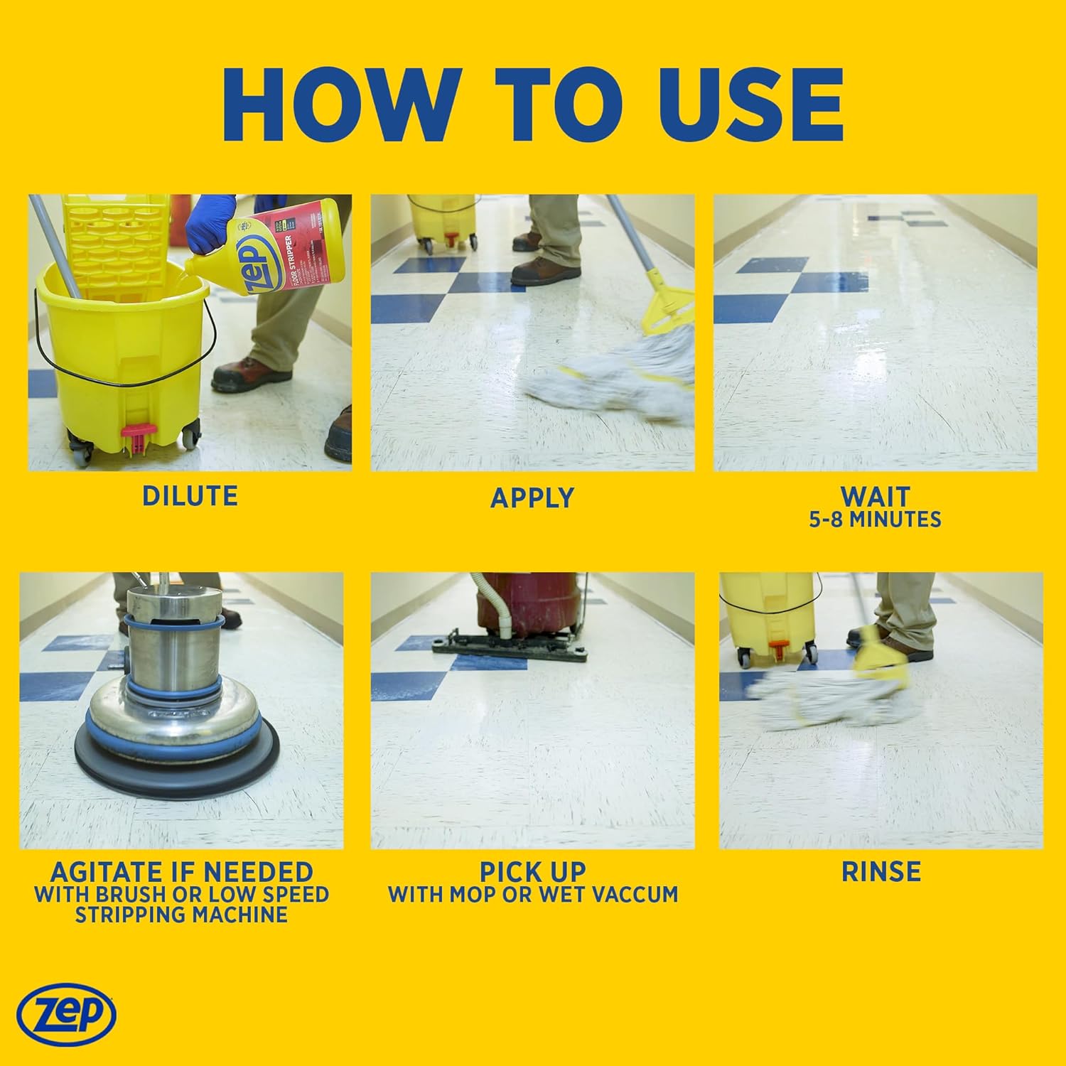 - Digs Deep: Zep Heavy-Duty Floor Stripper Concentrate removes stubborn finishes and heavy buildup to prepare for a new finish. It is ammonia-free and has a low-foam application