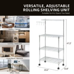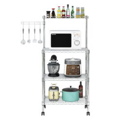 Zimtown 4-Tier Bakers Rack Kitchen Utility Cart Storage Rack Microwave Oven Stand with Hanging Hooks Chrome for Dining Room, Home, Silver