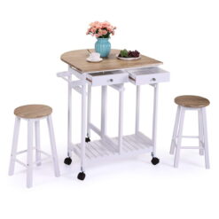 Zimtown Kitchen Cart Island Trolley Storage Dining Table 2 Bar Stools 2 Drawers