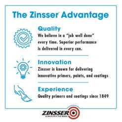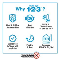 Zinsser Bulls Eye 1-2-3 1 qt. White Water Based Interior/Exterior Primer and Sealer (6-Pack) provides excellent adhesion to glossy surfaces without sanding. It’s great for interior and exterior surfaces. Outstanding low VOC and low odor formula is designed to resist blistering, peeling and mold and mildew growth. Works great in low temperatures, inhibits rust and seal tanning bleed.
