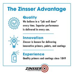 Zinsser 13 oz. Bulls Eye 1-2-3 White Oil Based Interior/Exterior Primer and Sealer Spray (Case of 6) provides excellent adhesion to glossy surfaces without sanding. It’s great for interior and exterior surfaces. Long lasting formula is designed to resist blistering, peeling, mold and mildew growth, inhibit rust and seal tanning bleed.