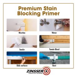 Zinsser 1 gal. 100 VOC Cover Stain Oil-Base Interior/Exterior Classic sticks to any surface without sanding. Exceptional stain killing power, its oil-based formula effectively seals stains from water, smoke, fire, nicotine and blocks tanning bleed. It offers excellent flexibility and adhesion.