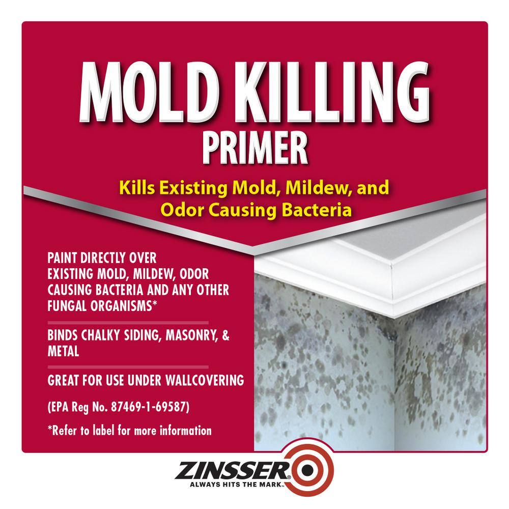 Zinsser Mold Killing Primer is a water-based EPA registered fungicidal protective coating that can be used to paint over and kill all existing mold, mildew, moss, fungi, odor causing bacteria and any other fungal organisms. It prevents the growth of mold, mildew and other fungal organisms on the paint film. Mold Killing Primer is for use on non-porous interior and exterior, residential, commercial, and industrial applications.