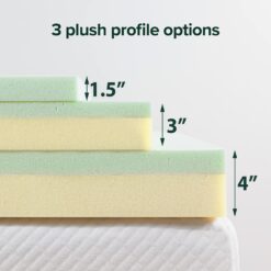 - NATURAL INGREDIENTS – This 1.5 inch memory foam layer features natural additives like green tea, charcoal and plant oil; fits under any standard or deep pocket fitted sheet