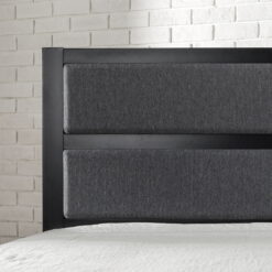 This stunning metal and grey upholstered headboard will make a perfect addition to any bedroom. With a classic shape and style, this headboard is well-constructed with foam padded upholstery. This upholstered and metal headboard provides a classic framework for a mattress.