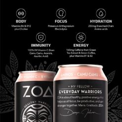 - Support Your Immune System: Every 16 fl. oz. ZOA Zero Sugar Energy Drink can contains 100% Daily Value of Vitamin C (90mg) from Camu Camu, Acerola Cherry and natural ascorbic acid to provide immunity support