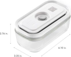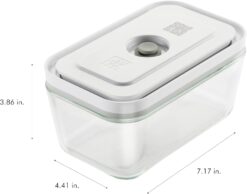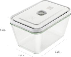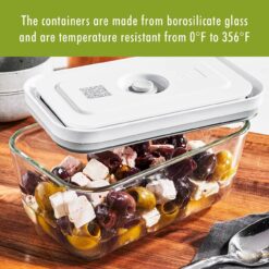 The Fresh & Save vacuum containers are designed to work with the vacuum pump to keep food fresh up to five times longer than non-vacuum storage. They are available in borosilicate glass or BPA-free plastic. Both versions are stackable and freezer, microwave (without vacuum seal), and dishwasher safe. Glass containers are ovenproof (without lid) and double as beautiful serving pieces at the table. Each container style is available in a range of sizes so you can store an entire leftover dinner, a light lunch, or a small to-go snack. With the Fresh & Save system, you can shop once a week and refrigerate or freeze fresh fruit, vegetables, meat, and fish in our vacuum containers and bags and enjoy the benefits of your own fresh market at home. Prepare your meals days in advance and enjoy them as fresh as the day they were cooked. Cook meat sous vide or marinate meat for the grill in just 30 minutes in the vacuum bags and containers. Here’s how it works: Dock the vacuum pump onto the container or bag valve and at the push of a button it extracts the air in mere seconds. It stops automatically once a sufficient vacuum has been obtained, locking in flavor, aromas, and vitamins. Set includes: 1 small, 1 meduim, and 1 large vacuum container. Container made of borosilicate glass and temperature resistant from 0°F to 536°F. Freezer safe, ovenproof (without lid), microwave safe (without vacuum seal), and dishwasher safe. Container lids feature double seal to create a perfect seal. For use with the Fresh & Save vacuum pump. Vacuum lid with innovative double sealing technology. Easy linking of the vacuum container with the ZWILLING Culinary World App via the QR code on the lids for tracking food and shelf life. Free app calculates how long the vacuum sealed food and meals can be kept and the reminder function informs you in good time when the food needs to be consumed. Recipes, explanatory videos and a shopping list round of the services offered by the app.